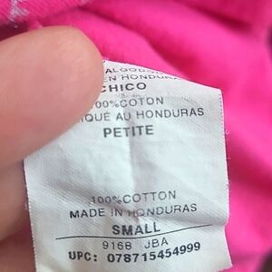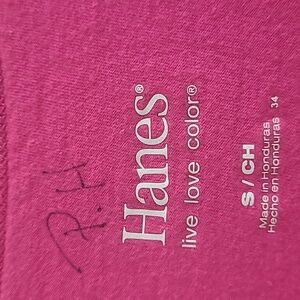 Owners initials are on the interior back and show slightly through the fabric. Not noticeable when wearing