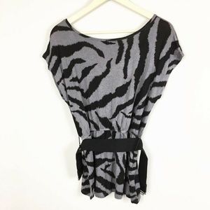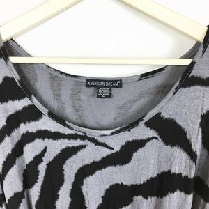 American Dreams Women's Medium Zebra Strip Blouse Drop Waist Scoop Neck