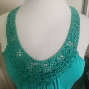 ▪︎DESCRIPTION: Vintage brand tank top, green with crochet around the neckline