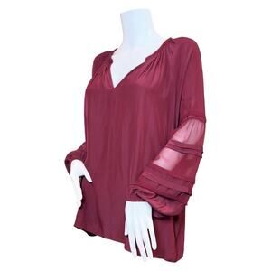 #T149 Ramy Brook Sheer Detail Puff Sleeve Top SZ M $345