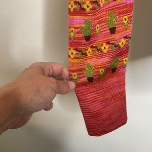 T15 ZARA Novelty cactus print sweater with cloth buttons size small pink orange