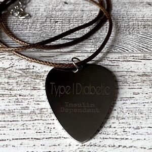 T1D Medical Alert, Guitar Pick Charm & Adjustable Rope, Unisex