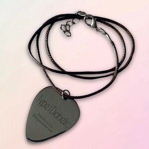 T1D Medical Alert, Guitar Pick Charm & Adjustable Rope, Unisex, NEW