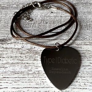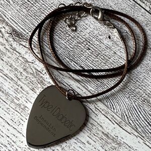 T1D Medical Alert, Guitar Pick Charm & Adjustable Rope, Unisex