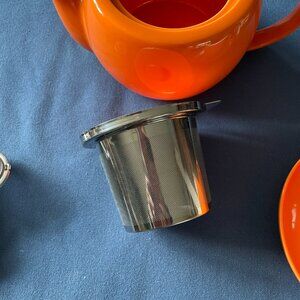 Enjoy loose tea anytime with this elegantly simple ceramic teapot, cup and saucer set. Also includes Loose tea basket and mini spoon-all brand new!
