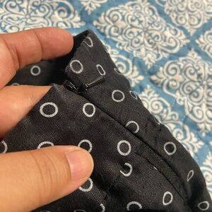 Very good VINTAGE condition, 100% LINEN, soft and flouncy, Chic and stylish black mini skirt with pleating around the waist and a playful geometric polka dot pattern. Perfect for any occasion.NO POCKETS. Zips in the Left waist. Measures approximately: