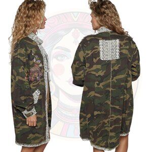 T273 POL LAST ONE Olive Camo Embroidered Lace Patch Jacket