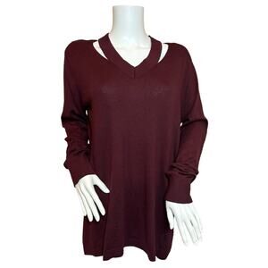 #T84 Vince Camuto Wine Cut Out Neck Sweater SZ M $88