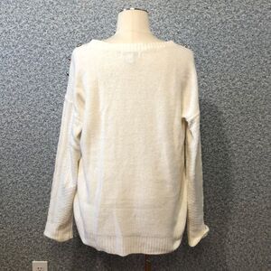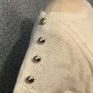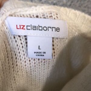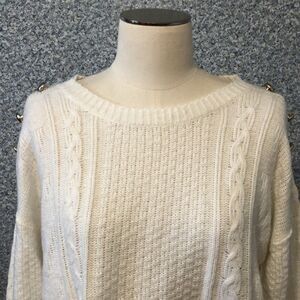 T284 Liz Clairborne Ivory Embellished Cable Knit Sweater Size L