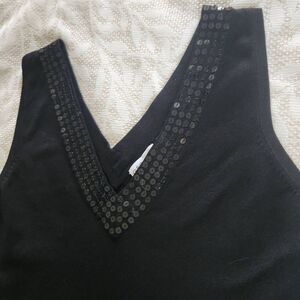 Black dressy tank with pretty sparkly sequined v neck, NWOT. Was never worn