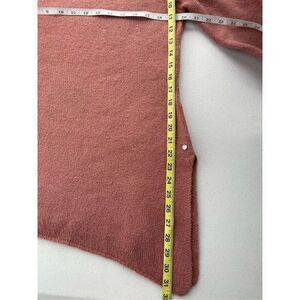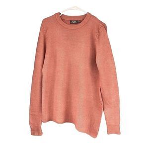 Keywords: knit sweater, pullover sweater, casual sweater, long sleeve sweater, crew neck sweater, salmon pink sweater, orb sweater, womens sweater, small sweater, S/P sweater, asymmetrical hem sweater, pink sweater