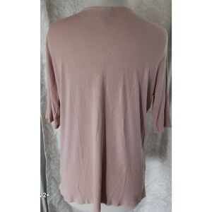 T69 Worthington ribbed knit pink top elbow length sleeve cut out shoulder Sz XXL