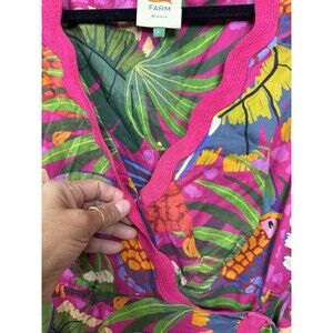 (T7) FARM RIO Wrap dress with painted toucan print. Long dress, tiered , size L