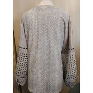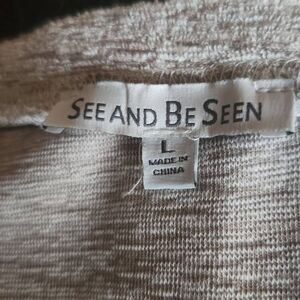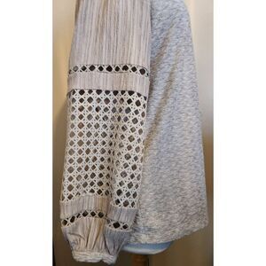 T83 See And Be Seen lightweight crocheted long-sleeve top heather taupe Sz L