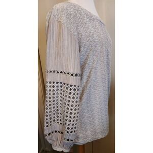 T83 See And Be Seen lightweight crocheted long-sleeve top heather taupe Sz L