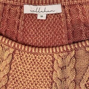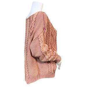 #T9 Callahan Revolve Enzyme Wash Rose Cable Knit Boat Neck Sweater $124