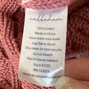 Callahan by Revolve enzyme washed rose cable knit boat neck sweater. Cable knit. Ribbed edges. Dropped shoulder. Revolve Style No. CAHN-WK38. Manufacturer Style No. 81725.