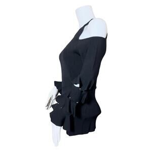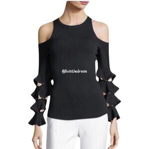 #T96 JONATHAN SIMKHAI SLASHED RUFFLE BEADED COLD-SHOULDER TOP BLACK SZ L $325