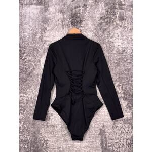 TA3 Surfy Swimsuit 2X Womens Black Long Sleeve Zip Front One Piece