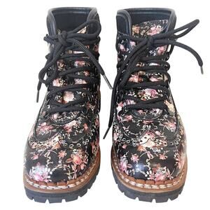 TABITHA SIMMONS Bexley Floral Print Leather Combat Boots Size 7.5