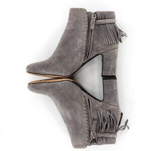 TABITHA SIMMONS Gray Suede Fringed Ankle Bootie