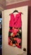 Bodice is made out of 100% polyester, skirt is made out of 100% cotton. Skirt lining is 100% acetate. THIS DRESS IS DRY CLEAN ONLY