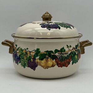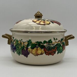 TABLETOPS UNLIMITED Pot and Lid Enamel Steel Heat Fruits Covered Serving Dish