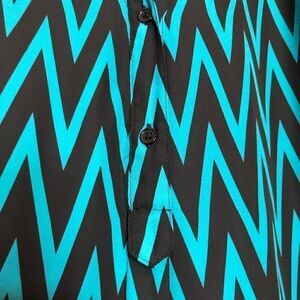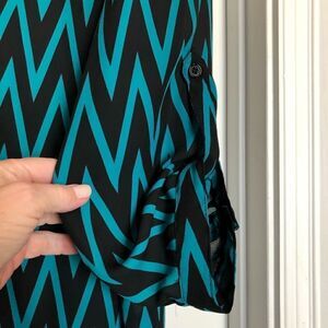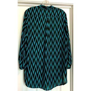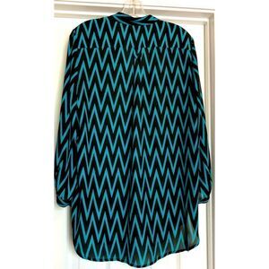 TACERA - NWOT 🎉HPx2🎉 L Sz L Tunic-Length 3/4-Button Chevron Blouse/Black & Teal