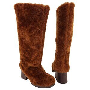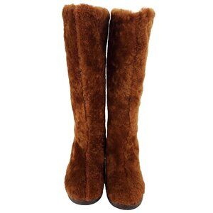 Shearling tall boots in brown.