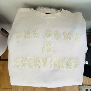 TACKMA THE GAME IS EVERYTHING CREW SWEATSHIRT, OFF WHITE, MEDIUM, UNISEX, NWOT