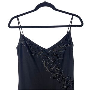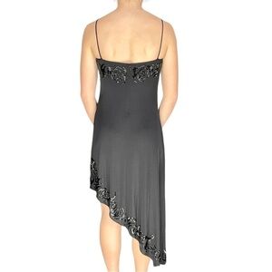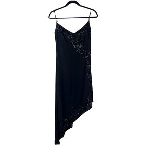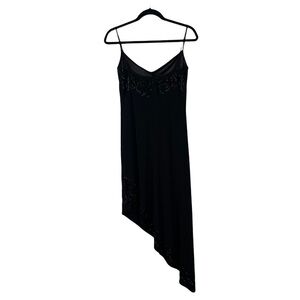 TADASHI SHOJI 90'S SPAGHETTI STRAP CAMI ASYMMETRIC HEM BEADED BLACK SLIP DRESS