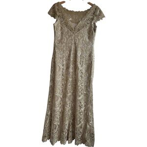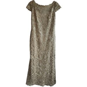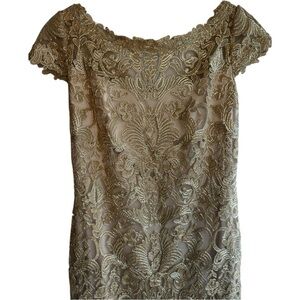TADASHI SHOJI Adena Corded Embroidery Gown | Gold Nude Formal Evening Dress 14