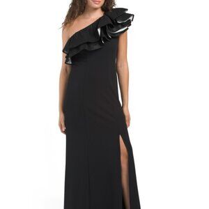 TADASHI SHOJI Black Sequin One Shoulder Gown