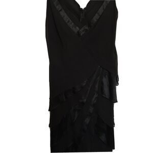 TADASHI SHOJI Black Silk Tiered V-neck Gown Sleeveless Size 6 Stunning