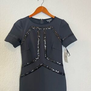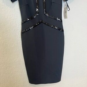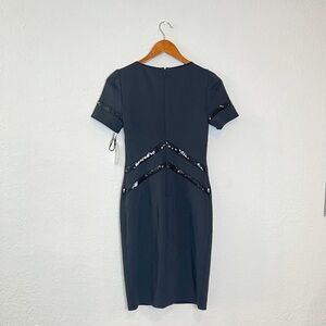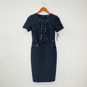 TADASHI SHOJI Black Stretch Short Sleeve Sheath Dress