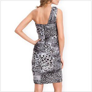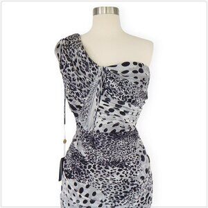 TADASHI SHOJI Black White Animal Print One Shoulder Ruched Evening Dress NWT 8