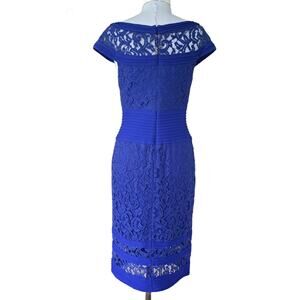 TADASHI SHOJI Blue Lace & Pintuck Bateau Neckline Sheath Dress Sz 10 Cocktail