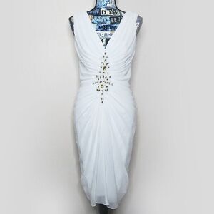 TADASHI SHOJI Embellished Chiffon Cocktail Dress V-Neck Sleeveless Knee Length