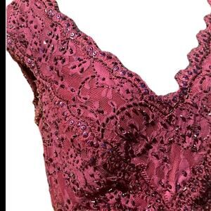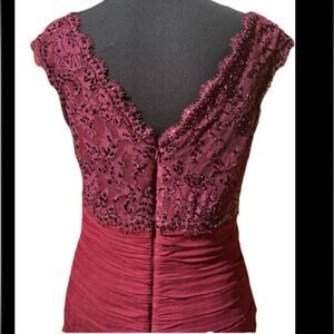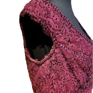 TADASHI SHOJI Lace Beaded Sleeveless Evening Dress Burgundy Wine 6 Prom Wedding