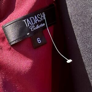 Make a statement at your next special occasion with this stunning Tadashi Shoji evening dress! This sleeveless gown features delicate lace and beaded detailing, adding a touch of elegance and sophistication.