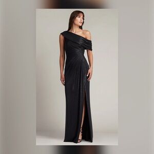This stunning one-shoulder gown, crafted from metallic jersey, delivers high-key glamour with low-key effort. Elaborate draping is easy to wear because this style boasts a one-zip fit with an intricately constructed, formfitting lining made from tailored jersey. NWT