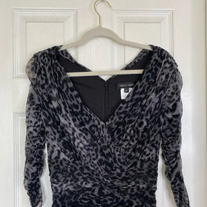 TADASHI SHOJI Leopard Print Graphite Gray Ruched Dress Size XS NWT Party