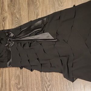 ❤️ TADASHI SHOJI SILK TIERED RUFFLE HALTER SHEATH COCKTAIL DRESS, 4 back zip closure. Measurements are approximate and taken laying flat: 15.75" pit to pit and 53"/58'" long front/back (from height of top of dress to hem.) 13" across waist laid flat, 17.5" across hips laid flat. Excellent condition!