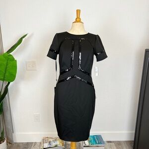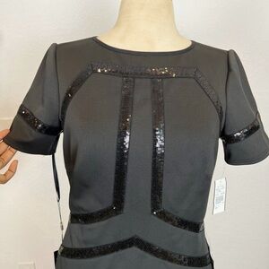 TADASHI SHOJI Black Stretch Short Sleeve Above The Knee Sheath Dress