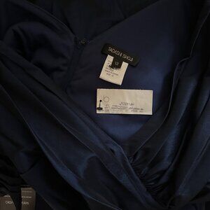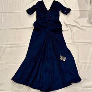 TADASHI SHOJI Taffeta Navy Blue Beaded Long Evening Dress 3/4 Sleeve Size 12 NWT