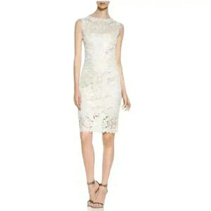 TADASHI SHOJI Women’s White Sequin Embroidered Sleeveless Formal Sheath Dress 6