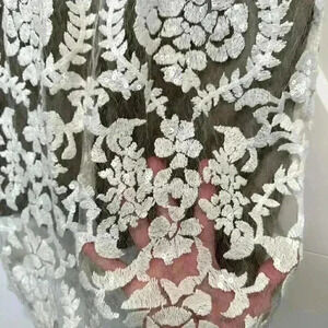 Women’s White Sequin Embroidered Lace Layered Over a Taupe Colored Slip | Round Neck Line | Zip Up Back | Above Th Knee | Formal Sheath Dress