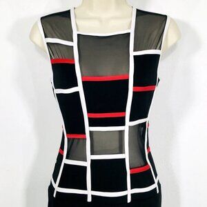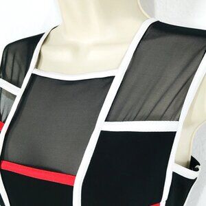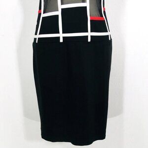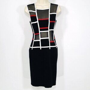 Designer Tadashi Geometric Sheer Mesh Squares Sheath Dress Sz S
