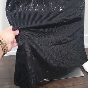 This gown, with its off-shoulder neckline, long-sleeve lace bodice, and sequined skirt with shapely yoke, accentuates curves and conveys timeless glamour. Center back invisible zipper.