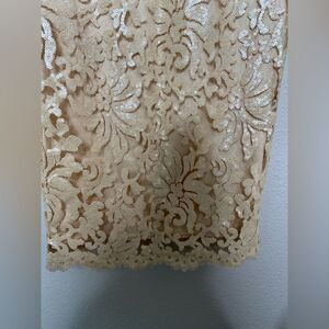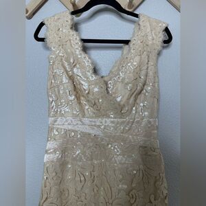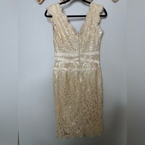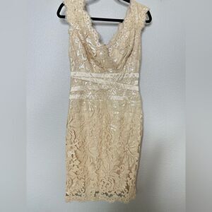 TADASHI Shoji Primrose Embroidered Lace Sheath Cocktail Dress Ivory Nude Size 4